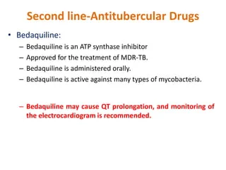ABD FDA onayı 2012. 2014 itibarıyla, bedaquilin ilacının tek lisanslı endikasyonu , öncelikle güvenlik endişeleri nedeniyle, çoklu ilaca dirençli tüberkülozun tedavisindedir