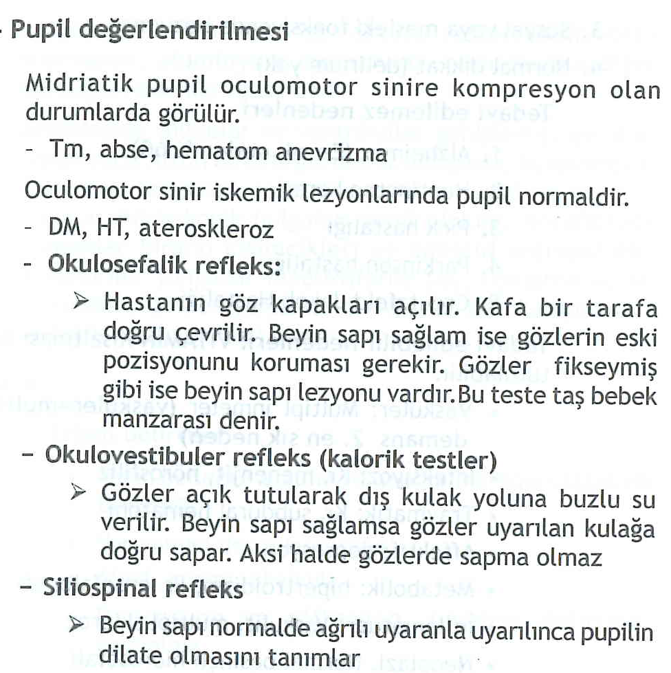 Okülomotor sinir basısında midriyatik pupil görülür.