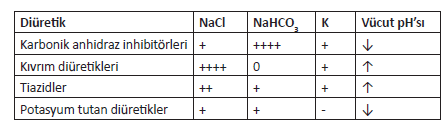 Yukarıdaki diüretik ilaçlardan hangileri vücut pH’sını azaltır?