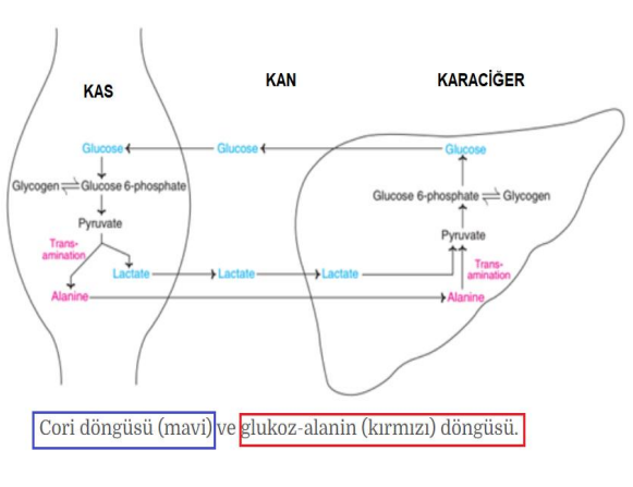 Alanin karaciğere taşınır ve glukoneogenez için kullanılır.