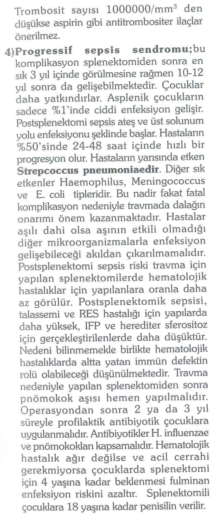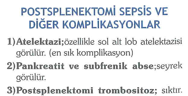 Postsplenektomi Sepsis ve diğer komplikasyonlar