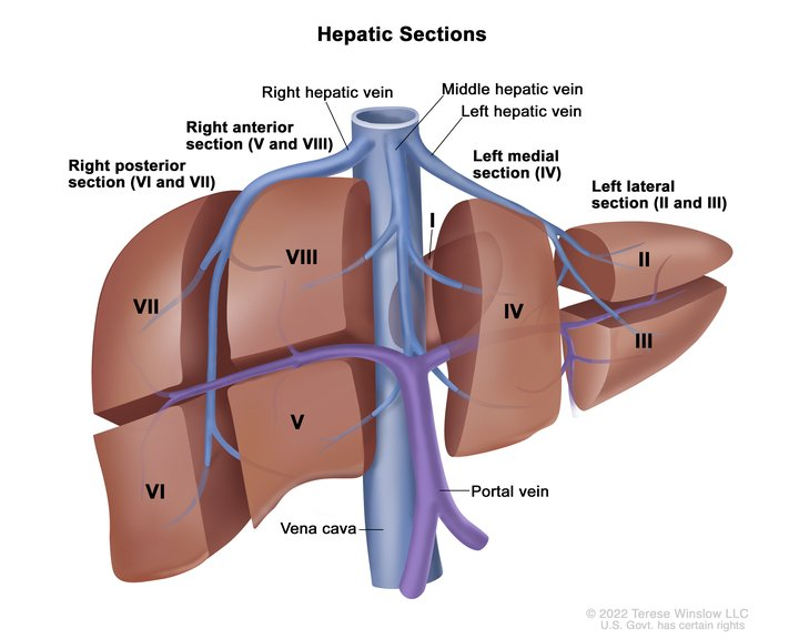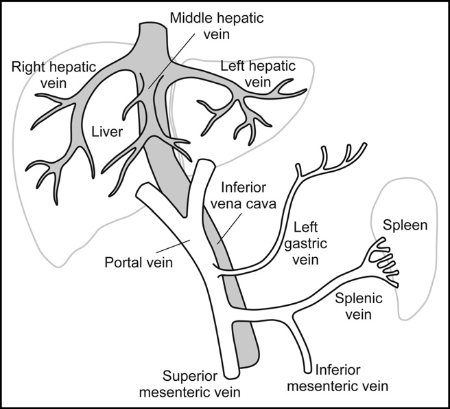 Hepatik venler, hepatik loblar arasındaki köf lelerde bulunan spatia interlobularia’ya kadar ilerler ve burada interlobüler venleri (v. interlobularis) meydana getirirler. Sonra hepatik lobülleri (lobuli hepatis) oluflturan epitel hücrelerinden yapılmıfl hücre kolonları arasındaki ven sinusoidlerini oluflturarak dağılırlar. Böylece kan ile karaciğer hücreleri arasında çok sıkı temas kurulmufl olur. Bu ven kapillerlerine proper hepatik arterin dalları da karıflır. Böylece her iki damar sistemi ile gelen kan, hepatik lobüllerin merkezinde bulunan santral venlerde (v. centralis) toplanır. Santral venler de daha büyük çaplı venleri meydana getirirler. Sonuçta, 2-4 kalın ve 10-15 ince ven meydana gelir ki, bunlara hepatik venler (Vv. hepaticae) denir. Bunlar sağ (v. hepatica dextra), sol (v. hepatica sinistra) ve orta (v. hepatica intermedia) hepatik venler adını alırlar ve karaciğer arka yüzündeki sulkus vena kava içinden geçen v. kava inferior’a açılırlar. Hepatik venler, proper hepatik arter, hepatik portal ven ve ana hepatik duktusun (ductus hepaticus communis) intrahepatik dağılım modeline uygunluk göstermez ve intersegmental durumda bulunurlar