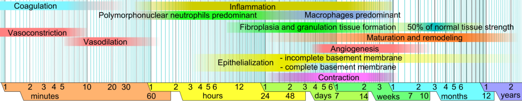1. Birincil (primer) yara iyileşmesi: Temiz bir insizyonda yara ağızları cerrahi dikişle birleştirildiğinde görülen iyileşme yara iyileşmesinin en az karmaşık örneğidir ve primer yara iyileşmesi olarak isimlendirilir. İnsizyon tipi yaralarda az sayıda epitel ve bağ doku hücresi yıkılır. İnsizyon alanı dardır ve hemen fibrin ve kan hücreleri içeren pıhtı ile dolar. Yüzeydeki pıhtının dehidrate olması ile meydana gelir. yarayı örten ve dış çevreden izole eden kabuk