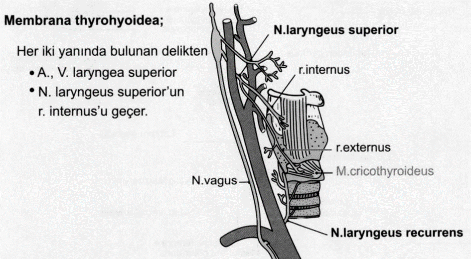Kısa Not: Membrana thyrohyoidea’dan Geçen yapılar: N. laryngeus superior (ramus internus), A. laryngea superior (ve eşlik eden ven)