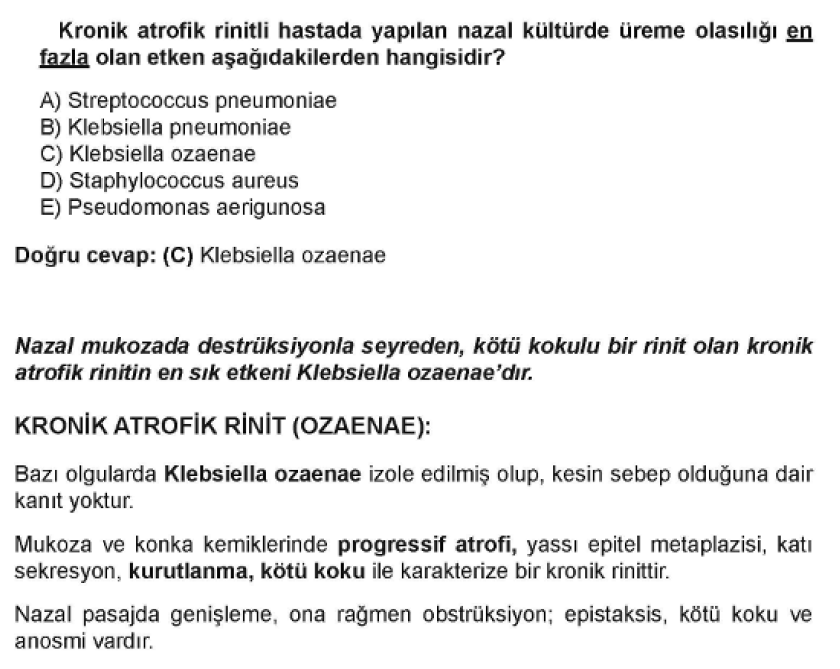 - Etken: En sık Klebsiella ozaenae (Klebsiella pneumoniae’nin bir alt türü).