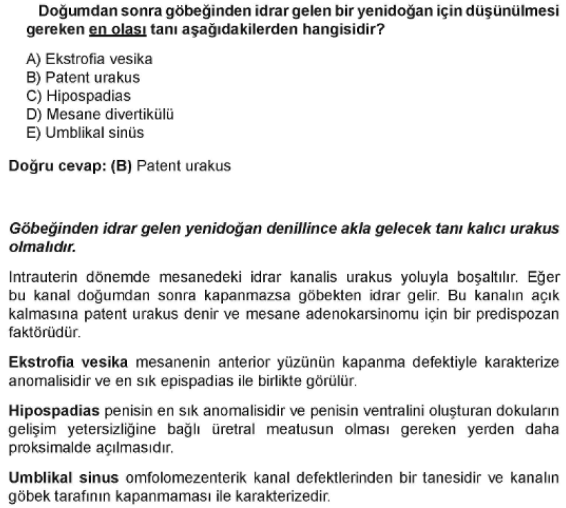 - Patent urakus: Mesane ile göbek arasındaki kanalın açık kalması → göbekten idrar akması.