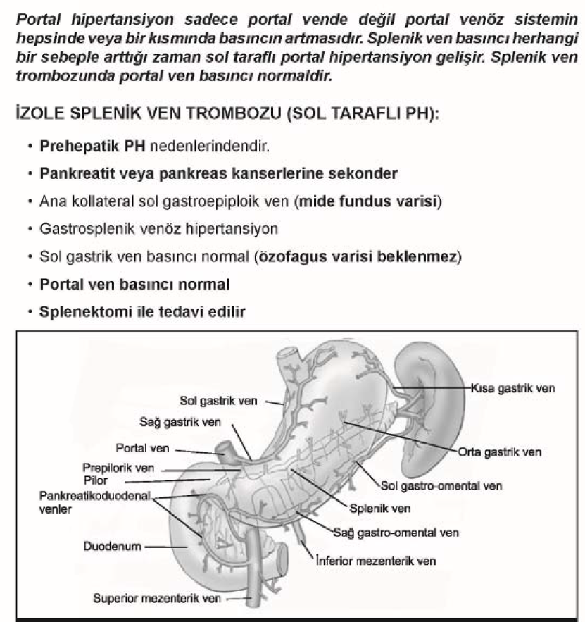 - Splenik ven tromboze olduğunda dalaktan gelen venöz kan hepatik porta değil, kısa gastrik venler üzerinden fundus venlerine yönelir.
