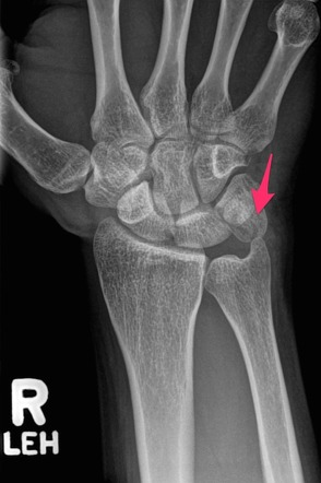 Perilunat çıkık nedeniyle tedavi edilen hastada trikuetro-pisiform eklemdeki yaralanma ve pisiformun minik parçalı kırıkları görülmekte. Pisiform kırıkları, ağırlıklı olarak konservatif yöntemlerle tedavi edilir.