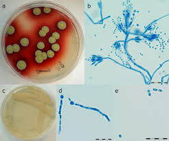 Deri lezyonları, lenf düğümleri ve kemik iliği biyopsilerinde histopatolojide organizmaların varlığı görülmektedir . Hücre içi ve hücre dışı formlar ovaldir ve karakteristik bir enine bölmeye sahiptir. Kültürde koloniler tozlu yeşil renktedir ve kırmızı pigment üretir; ancak, önemli sayıda vakada kültürler negatiftir.