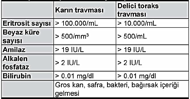 Diagnostik Peritoneal Lavaj (DPL) – POZİTİFLİK KRİTERLERİ