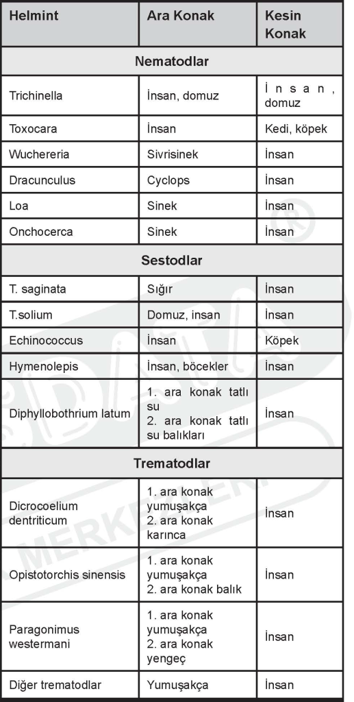Ara konağı olan helmintler