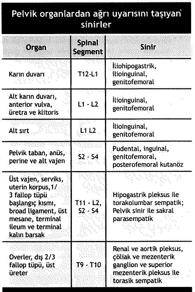 Pelvik organlardan ağrı uyarısnı taşıyan sinirler