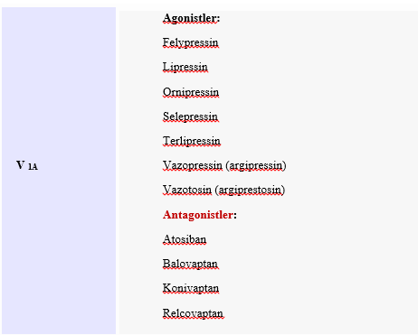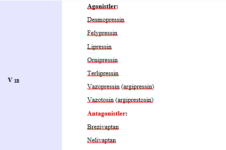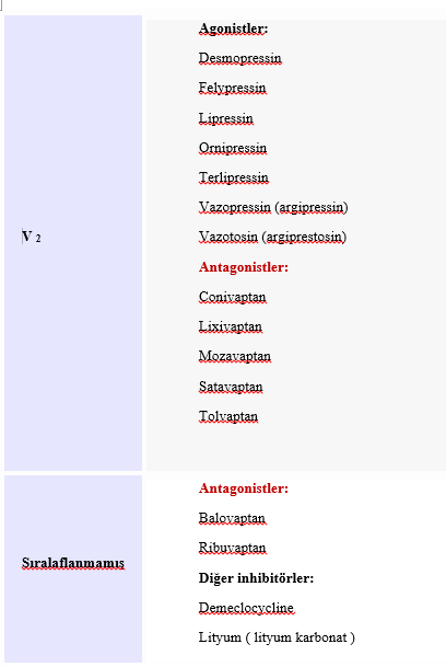 V2 reseptör selektif ADH antagonisti: Liksivaptan, Mozavaptan, Tolvaptan, Satavaptan
