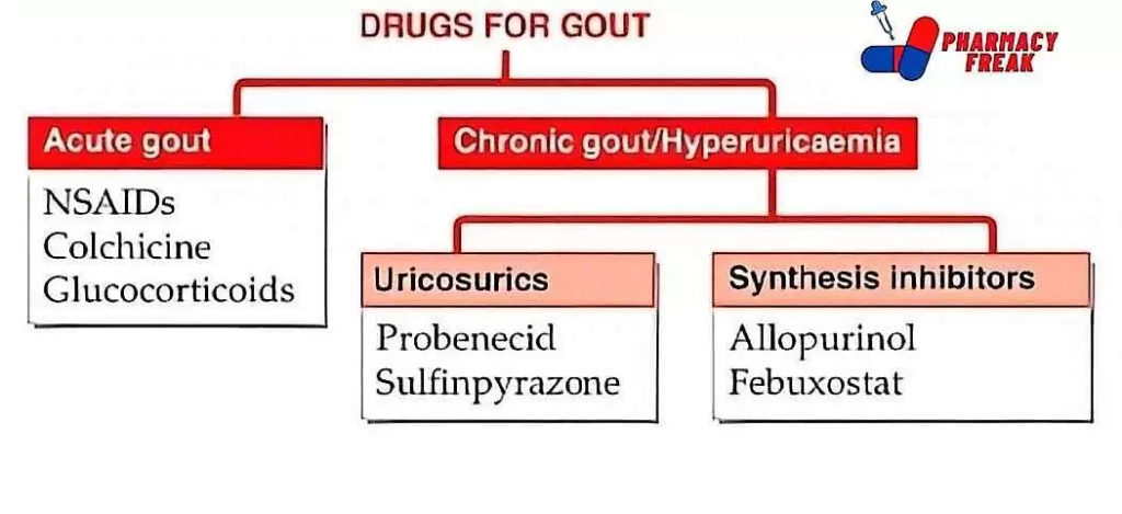 | Ksantin oksidaz inh. | Allopurinol, Febuksostat | Kronik gut – temel |