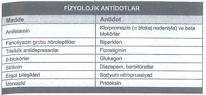 3-Fonksiyonel / Fizyolojik Antidotlar