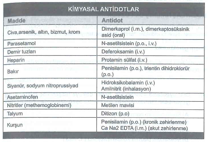 | Dimercaprol (BAL) | Arsenik, cıva, kurşun |