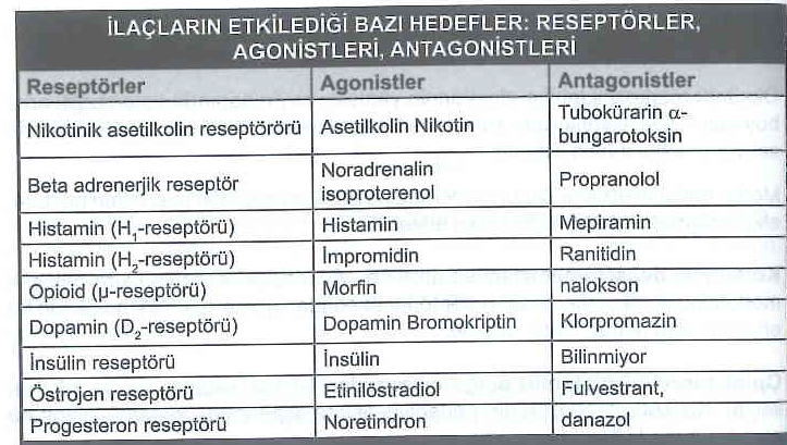 | Reseptör | Agonistler | Antagonistler | Sınav Püf nokatası |