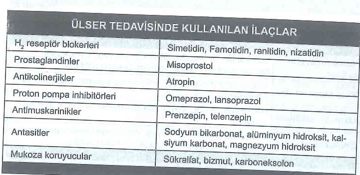 Ülser tedavisinde kullanılan ilaçlar