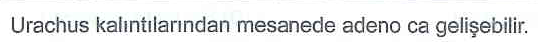 Mesane adenokarsinomlarının önemli bir kısmı urachus kökenlidir