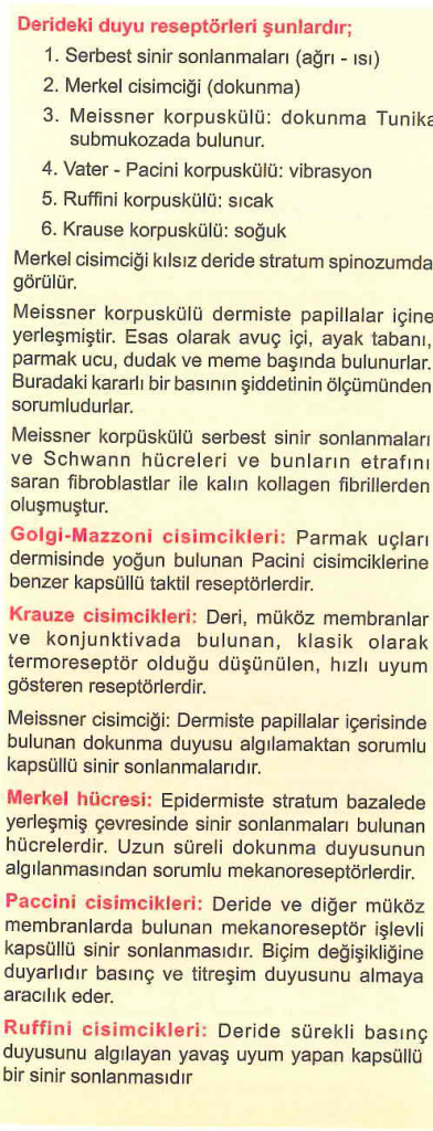Derideki duyu reseptörleri
