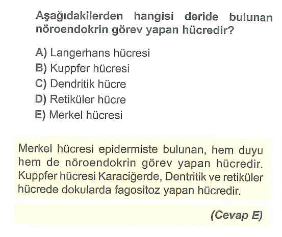 Merkel Hücresinin yerleşimi; Epidermis (stratum basale) dir.