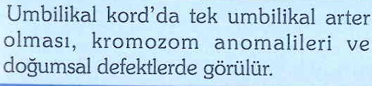 A. umbilicales (2 adet) ile deoksijenize kan taşır. Plasentaya geri döner ve tekrar oksijenlenir