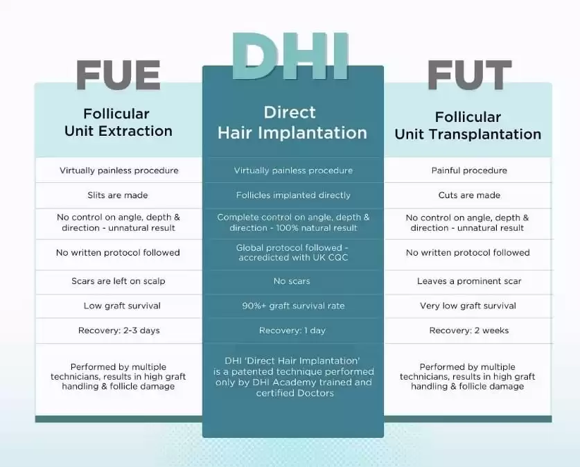 | FUE | Yok | Çok az | Yüksek | Yüksek | ⭐⭐⭐⭐ |