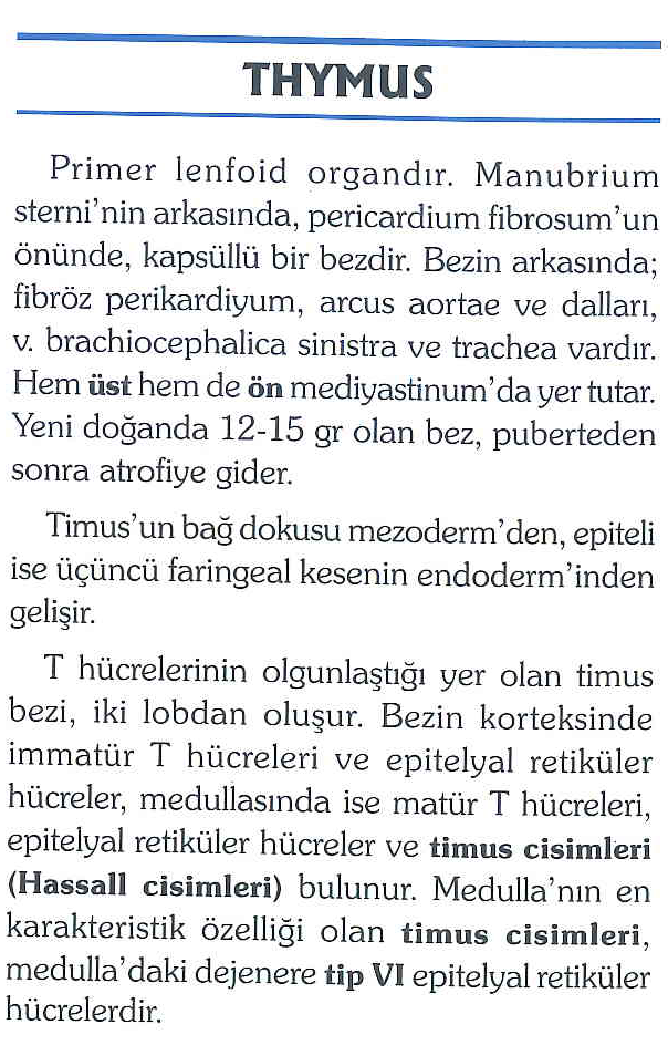 c-Tip VI Hücreler: Bunlar en karakteristik olanlardır. Birleşerek ve keratinleşerek Hassall Korpuskülleri‘ni (Timik korpusküller) oluştururlar. Sadece medullada bulunurlar.
