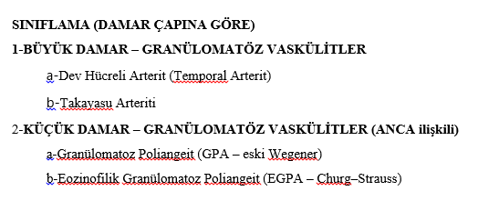 A-BÜYÜK DAMAR – GRANÜLOMATÖZ VASKÜLİTLER