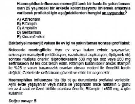 Hemoofilus influenzae menenjit profilaksisinde kullanılan ilaç; rifampin 1×600 mg, 4 gün 11 Mart 2026 yazar drtanjuy