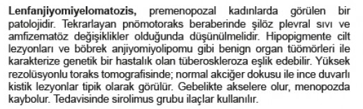 Tanı yöntemleri: HRCT, ****serum VEGF-D yüksekliği ve akciğer biyopsisi (gerekirse)