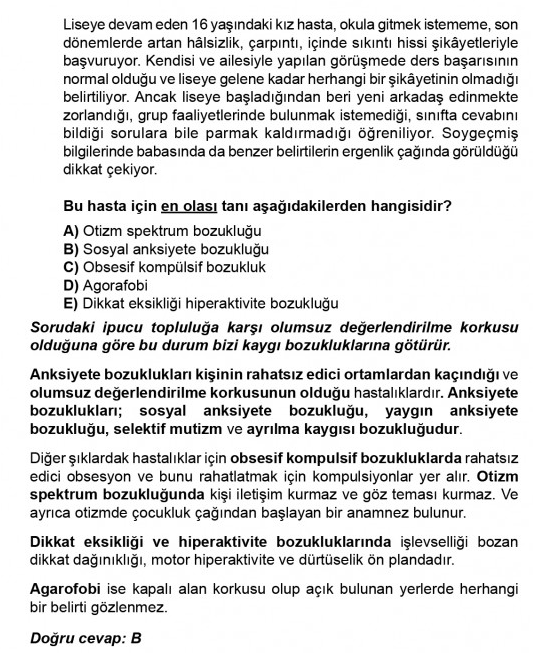 3. Sosyal Anksiyete Bozukluğu (Sosyal Fobi); Bireyin başkaları tarafından yargılanma, eleştirilme veya küçük düşürülme korkusu nedeniyle sosyal etkileşimlerden kaçınması durumudur. Sosyal ortamlarda belirgin bir huzursuzluk ve işlevsellikte bozulma (impairment) ile kendini gösterir. *****