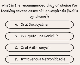 Leptospirosis, Leptospira interrogans bakterisinin neden olduğu zoonotik bir enfeksiyondur. Hastalığın şiddetine göre tedavi seçimi değişmektedir: