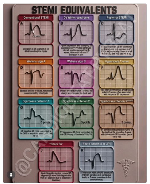 - Hyperacute T Wave (Kutu F): MI’nın ilk dakikalarında görülen, geniş tabanlı ve asimetrik dev T dalgaları.