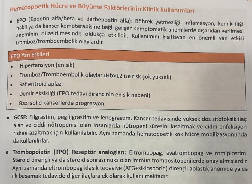 Hematopoetik Büyüme Faktörleri – Klinik Kullanım (EPO, G-CSF, TPO)