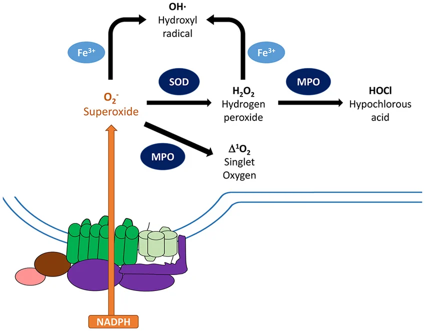 Oluşan hipokloröz asit (HOCl) = çok güçlü bakterisidal ajan (“çamaşır suyu etkisi”)
