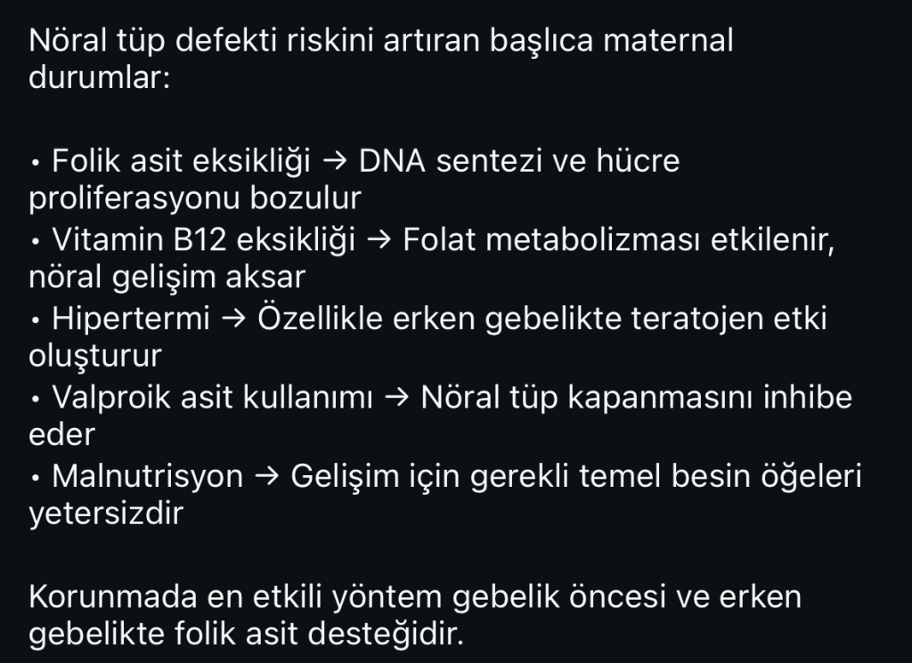 Nöral tüp defekti riskini arttıran materyal durumlar
