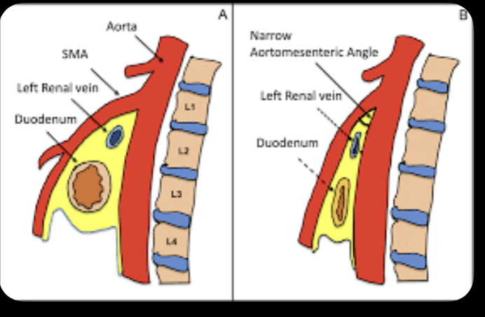 - Duodenum sıkışır → obstrüksiyon