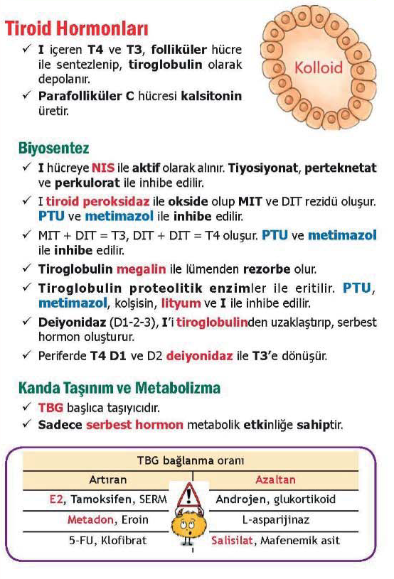 TBG: T4 ve T3’ü bağlar. Hormonların çoğu bağlı formda taşınır. Sadece serbest (free) hormonlar aktiftir