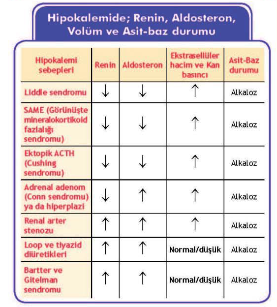 Hipokalemide Renin, aldosteron, volüm ve asit baz durumu