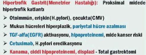 - Foveolar hiperplaziye (mide epitel hücrelerinin aşırı çoğalması),