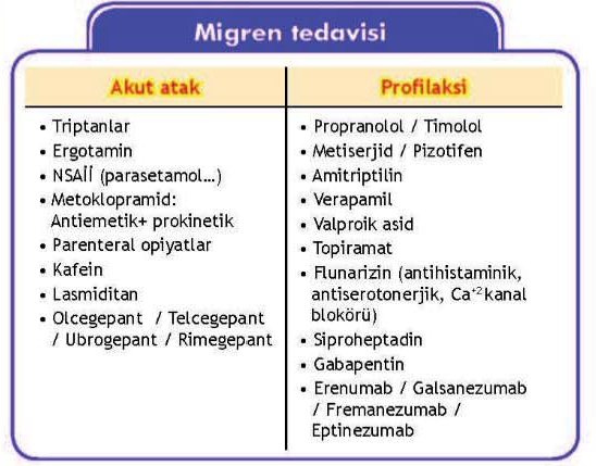 | CGRP antikorları | Erenumab, Fremanezumab, Galcanezumab, Eptinezumab | Yeni nesil |
