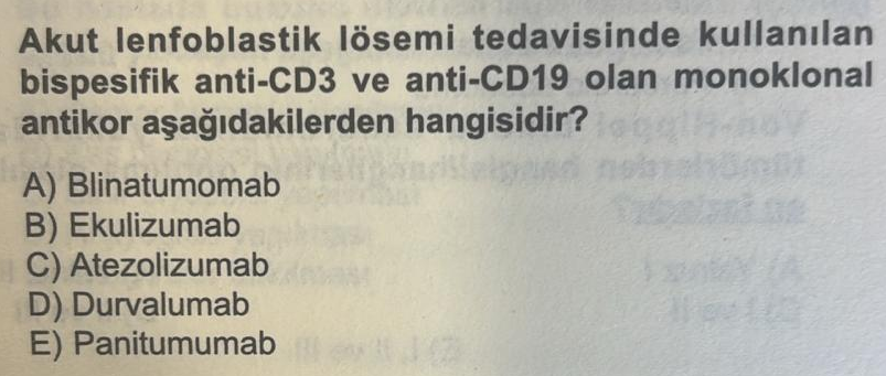 Blincyto markası altında satılan Blinatumomab , Philadelphia kromozomu negatif, tekrarlayan veya dirençli akut lenfoblastik lösemi tedavisinde kullanılan bir biyofarmasötik ilaçtır .