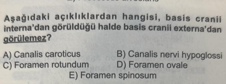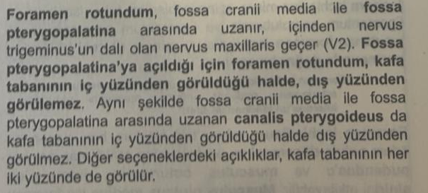 Basis cranii internadan görüldüğü halde basis cranii externadan görülmeyen açıklıklar; foremen rotundum ve canalis pterygoideus 27 Mart 2026 yazar drtanjuy