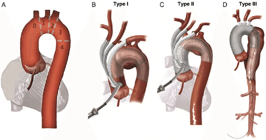 - Endovasküler: Stent-greft, yerleştirilen yapay Dacron greftin (yeni Zone 0) içine oturtulur.
