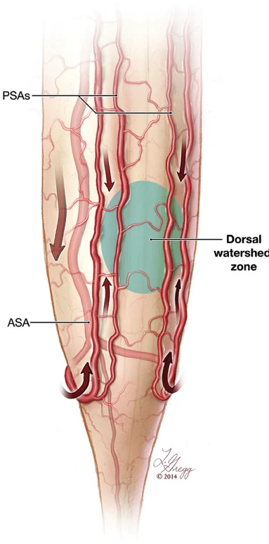 T1 – T4 Arası: Bu bölge, yukarıdan gelen vertebral destek ile aşağıdan gelen Adamkiewicz desteği arasındaki “sınır bölgesi” (watershed) olduğu için hipoperfüzyona en duyarlı yerdir.
