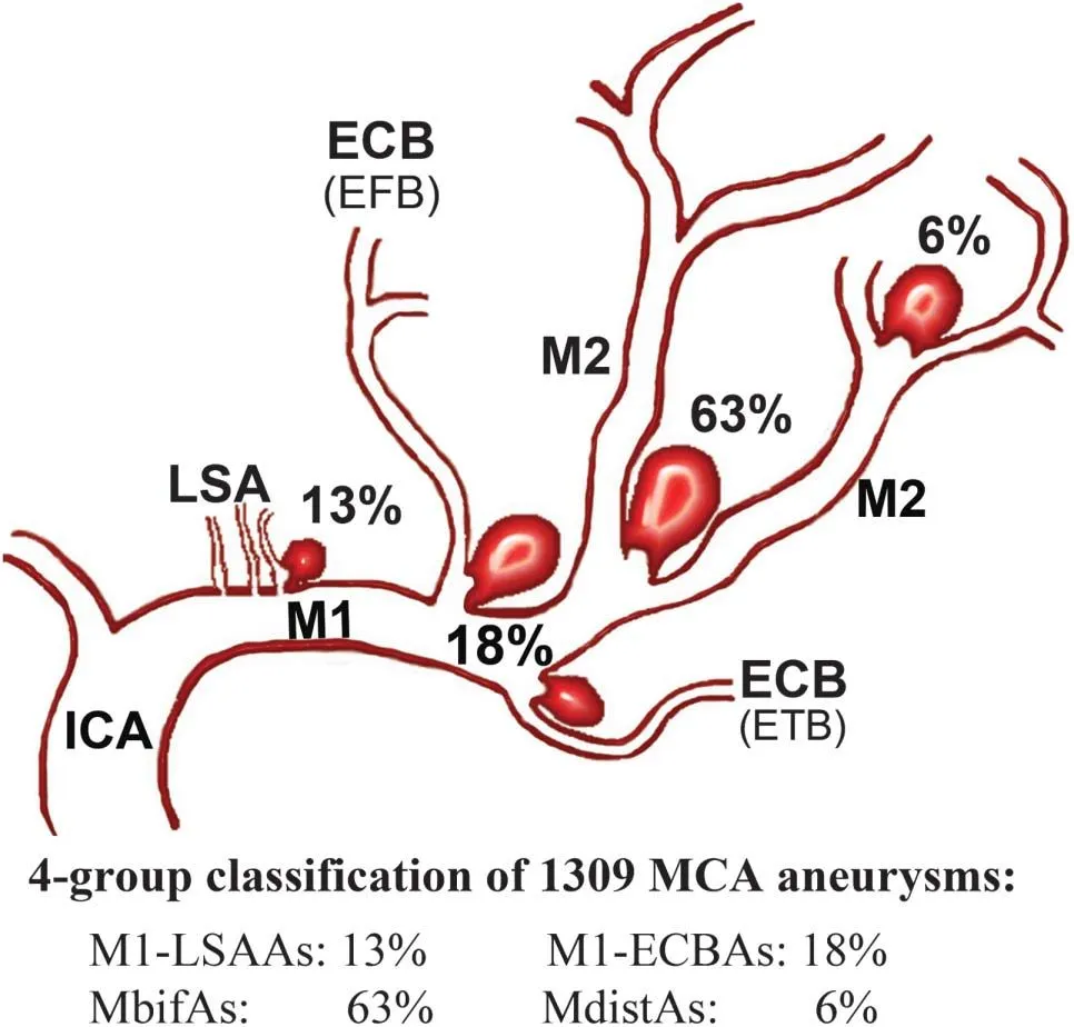 M1 anevrizmasının (%60) ****erken kortikal dal anevrizması, (%40) ise lentikülostriat arter anevrizmasıydı.