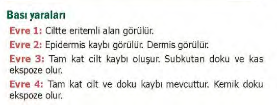 EVRE 1; Eritem (kızarıklık), Deri bütünlüğü korunmuş, Basmakla solmaz (non-blanching). Sadece renk değişikliği saptanır.