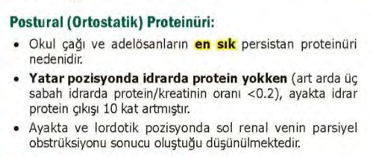 Tanı; Sabah ilk idrar (supin pozisyon sonrası) Protein YOK / normal