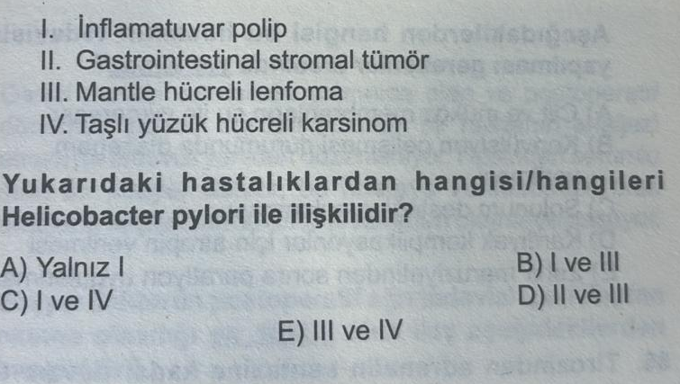 4-Gastrik MALT lenfoma (EN SPESİFİK TÜMÖR); MALT lenfoma; H. pylori ile en güçlü ilişkili tümördür. rken evrede Sadece antibiyotik tedavisi ile gerileyebilir
